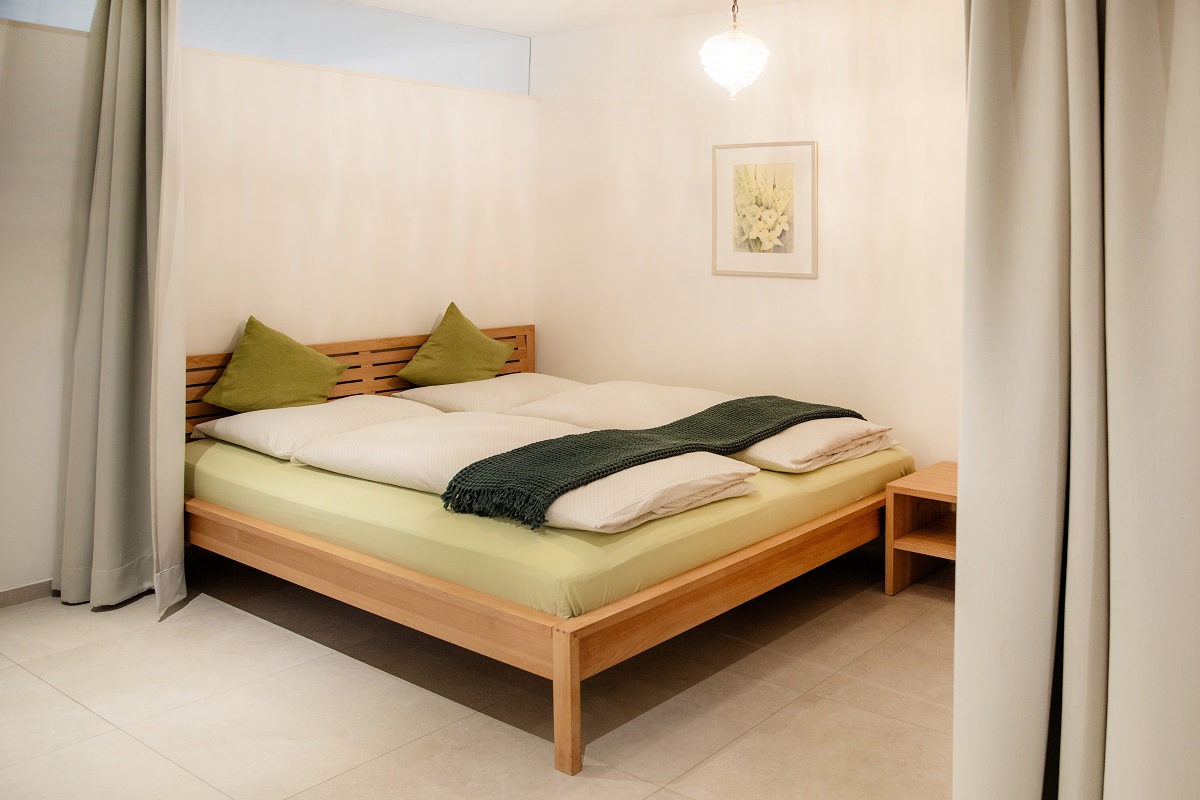 Questo appartamento dimostra che sono sufficienti 30 m² per rendere accogliente il nostro maso. Piccolo ma praticamente confortevole: una piccola cucina con una gradevole area pranzo, un letto matrimoniale e un bagno. E in caso di necessità, un comodo divano si trasforma in un letto a due piazze.
